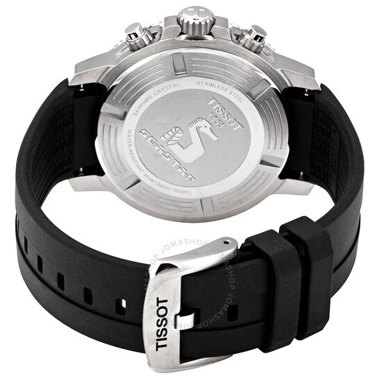 علبة من الفولاذ المقاوم للصدأ مع سوار مطاطي أسود. إطار دوار أحادي الاتجاه من الفولاذ المقاوم للصدأ مع حلقة سيراميك سوداء. ميناء أزرق بعقارب فضية مضيئة وعلامات ساعات منقطة. علامات دقائق حول الحافة الخارجية. نوع الميناء: تناظري. عقارب وعلامات مضيئة. عرض التاريخ بين موضعي الساعة الرابعة والخامسة. كرونوغراف - ثلاثة أقراص فرعية تعرض: ٦٠ ثانية، ٣٠ دقيقة، وعُشر الثانية. حركة كوارتز عيار ETA G10.212. كريستال ياقوت مقاوم للخدش. تاج لولبي. غطاء خلفي صلب. شكل دائري. حجم العلبة: ٤٥.٥ مم. سمكها: ١٢.٨٢ مم. عرض السوار: ٢٢ مم. مشبك تانغ. مقاومة للماء حتى عمق ٣٠٠ متر / ١٠٠٠ قدم. الوظائف: كرونوغراف، راترابانت، تاريخ، ساعة، دقيقة، ثانية صغيرة. طراز ساعة رياضية. علامة الساعة: سويسرية الصنع. ساعة تيسوت سيستار 1000 كرونوغراف بمينا زرقاء للرجال T120.417.17.041.00.
