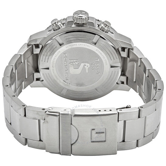 علبة من الفولاذ المقاوم للصدأ مع سوار من الفولاذ المقاوم للصدأ. إطار دوار أحادي الاتجاه من الفولاذ المقاوم للصدأ مع حلقة ألومنيوم سوداء. ميناء أزرق متدرج اللون مع عقارب فضية مضيئة وعلامات ساعات منقطة. علامات دقائق حول الحافة الخارجية. نوع الميناء: تناظري. عقارب وعلامات مضيئة. عرض التاريخ بين موضعي الساعة الرابعة والخامسة. كرونوغراف - ثلاثة أقراص فرعية تعرض: ٦٠ ثانية، ٣٠ دقيقة، و١٢ ساعة. حركة كوارتز عيار ETA G10.212. زجاج ياقوت مقاوم للخدش. تاج لولبي. غطاء خلفي صلب. شكل دائري. حجم العلبة: ٤٥.٥ مم. سمكها: ١٢.٨٢ مم. عرض السوار: ٢٢ مم. قابلة للطي مع مشبك أمان. مقاومة للماء حتى عمق ٣٠٠ متر / ١٠٠٠ قدم. الوظائف: كرونوغراف، تاريخ، ساعة، دقيقة، ثانية. طراز ساعة رياضية. علامة الساعة: سويسرية الصنع. ساعة تيسوت سيستار 1000 كرونوغراف كوارتز للرجال T1204171104101.