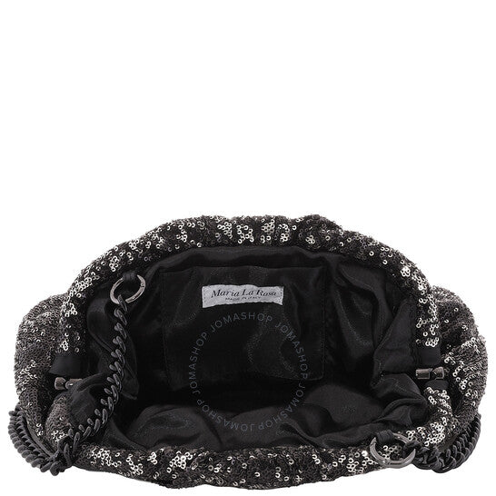 حقيبة كلاتش نسائية من ماريا لا روزا. رمز المنتج: WBS24.4 MLR-BLACK. اللون: أسود. المقاس: 30 × 20 × 5 سم. حقيبة كلاتش ماريا لا روزا المميزة، المصنوعة من قماش مرصع بالترتر، تجمع بين الأناقة البراقة والعملية، حيث توفر سعة ووظائف متعددة، وسلسلة متناسقة للحمل على الكتف، جميعها مصممة ومصنوعة في إيطاليا.