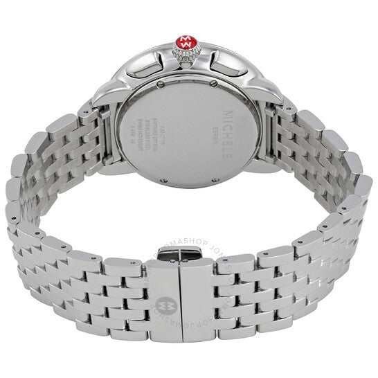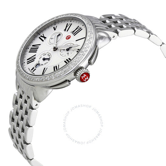 علبة من الفولاذ المقاوم للصدأ مع سوار من الفولاذ المقاوم للصدأ. إطار ثابت من الفولاذ المقاوم للصدأ مرصع بالألماس. ميناء فضي بعلامات ساعات رومانية. علامات دقائق حول الحافة الخارجية. نوع الميناء: تناظري. عقارب وعلامات مضيئة. يظهر عرض التاريخ عند موضع الساعة السادسة. كرونوغراف - ثلاثة أقراص فرعية تعرض: ٣٠ دقيقة، ٦٠ ثانية، ويوم الأسبوع. حركة كوارتز. كريستال ياقوتي مقاوم للخدش. غطاء خلفي صلب. أبعاد العلبة: ٤٠ مم × ٣٨ مم. سُمك العلبة: ١٠.٥ مم. شكل العلبة دائري. عرض السوار: ١٨ مم. مشبك قابل للطي بزر ضغط. مقاومة للماء حتى عمق ٥٠ مترًا / ١٦٥ قدمًا. الوظائف: الساعات، الدقائق، الثواني، التاريخ، الكرونوغراف. تصميم ساعة كاجوال. علامة الساعة: صناعة سويسرية. ساعة ميشيل سيرين كرونوغراف نسائية بمينا فضي MWW21A000001