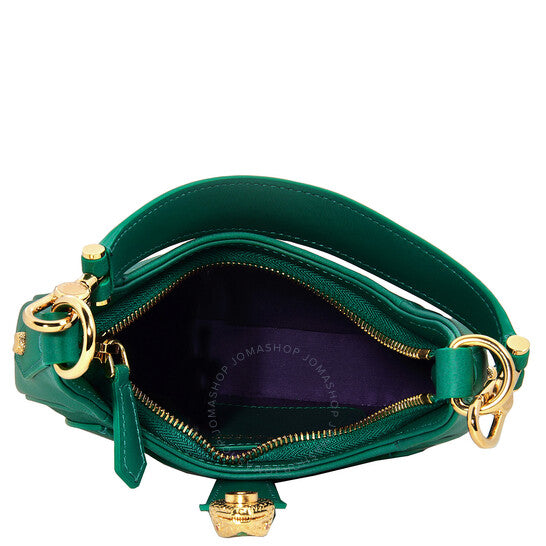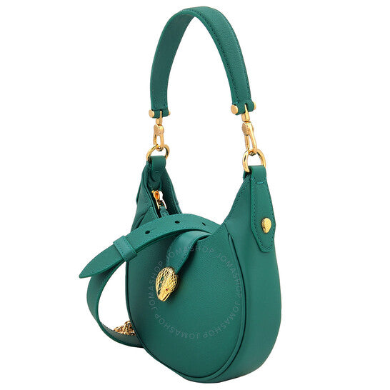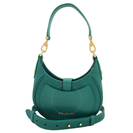 حقيبة هوبو نسائية من بولغاري. رمز المنتج: 292582. اللون: أخضر. المقاس: 19.5 × 20 × 4.5 سم. تجمع حقيبة سيربنتي إليبس الصغيرة ذات الحزام المتقاطع بين تفاصيل مميزة وشكل فريد، مصنوعة من جلد عجل أخضر فاتح بحبيبات عصرية، مع قفل مغناطيسي مرصع بالأحجار الكريمة على شكل رأس ثعبان مستوحى من ساعة بولغاري من ستينيات القرن الماضي. تتميز بسلسلة وحزام جلدي، ومقابض جلدية، وسحاب علوي، وجيب داخلي، وجيب خلفي خارجي، وشعار بولغاري معدني. 100% جلد عجل. صنع في إيطاليا.
