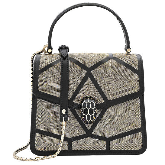 حقيبة بولغاري نسائية بمقبض علوي. رمز المنتج: 288915. الرمز الشريطي: 8052749191633. المقاس: 18 سم × 15 سم × العمق 9.5 سم. حقيبة بولغاري سيربنتي فوريفر بمقبض علوي. مصنوعة من جلد ناعم فاخر، تتميز هذه الحقيبة بزخرفة سلسلة المليون الشهيرة، مما يضفي عليها لمسة من الرقي. تضمن أجزاؤها الداخلية المقسمة تخزينًا منظمًا، بينما يوفر المقبض العلوي والحزام القابل للإزالة خيارات تنسيق متعددة للحمل على الكتف أو عبر الجسم. مصنوعة من جلد العجل 100%. صنع في إيطاليا.