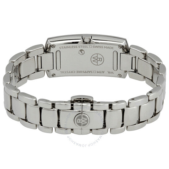 علبة من الفولاذ المقاوم للصدأ فضية اللون مع سوار فضي اللون. إطار ثابت من الفولاذ المقاوم للصدأ فضي اللون. ميناء بني مع عقارب فضية اللون وعلامات ساعات من الألماس. أرقام رومانية تُشير إلى موضعي الساعة 6 و12. نوع الميناء: تناظري. حركة كوارتز. زجاج ياقوت مقاوم للخدش. تاج قابل للسحب/الدفع. غطاء خلفي صلب. شكل العلبة مربع، أبعادها: 44 مم × 19 مم، سُمكها: 6.6 مم. عرض السوار: 15 مم. مشبك تانغ. مقاومة للماء حتى عمق 30 مترًا / 100 قدم. الوظائف: الساعات، الدقائق. طراز ساعة رسمية. علامة الساعة: صناعة سويسرية. إصدارات المنتج: 1500 ST3 00775، 1500.ST3.00775، 1500ST300775. ساعة ريموند ويل شاين نسائية بمينا بني مرصعة بالألماس 1500-ST3-00775.