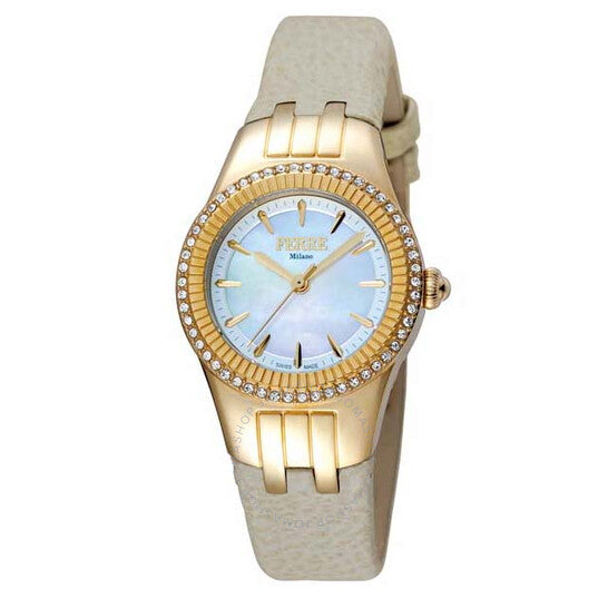 علبة من الفولاذ المقاوم للصدأ بلون ذهبي مع حزام جلدي كريمي. إطار ثابت من الفولاذ المقاوم للصدأ بلون ذهبي. ميناء فضي مع عقارب وعلامات ساعات ذهبية اللون. علامات دقائق حول الحافة الخارجية. نوع الميناء: تناظري. حركة كوارتز. زجاج معدني مقاوم للخدش. تاج ضغط/سحب. شكل العلبة دائري، مقاسها: 30 مم، سمكها: 8 مم. عرض السوار: 14 مم، طوله: 7.5 بوصة. مشبك بإبزيم. مقاومة للماء حتى عمق 50 مترًا / 165 قدمًا. الوظائف: الساعات، الدقائق، الثواني. تصميم كاجوال. علامة الساعة: صناعة سويسرية. ساعة فيري ميلانو نسائية بمينا فضية FM1L089L0021.