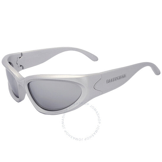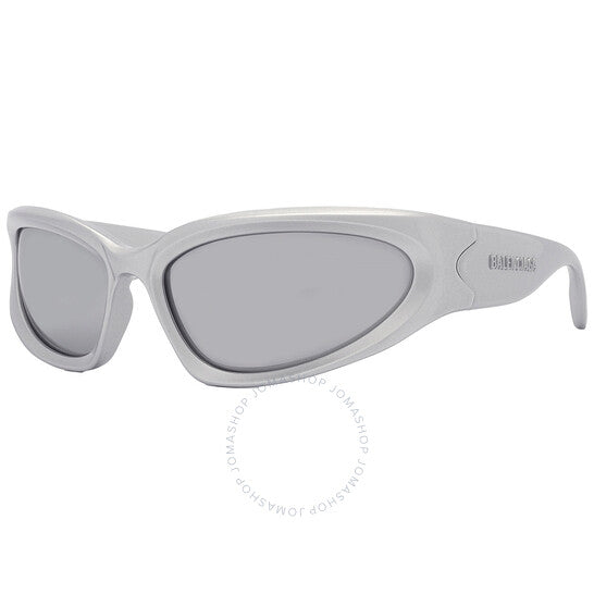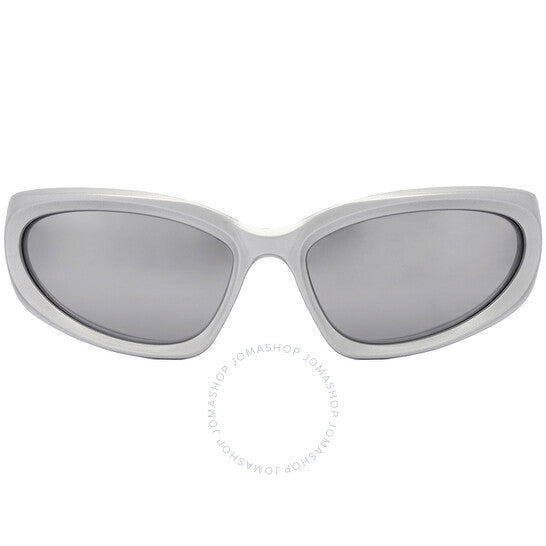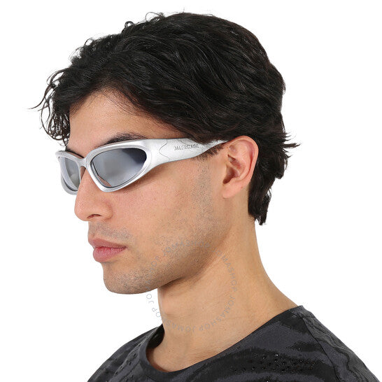 نظارات شمسية من بالنسياغا. رقم السلسلة: BB0157S. رمز اللون: 004. الشكل: ملفوف. عرض العدسة: 65 مم. جسر العدسة: 17 مم. طول الذراع: 125 مم. حماية 100% من الأشعة فوق البنفسجية. غير مستقطب. مادة الإطار: أسيتات. لون الإطار: فضي. نوع العدسات: فضية عاكسة. نمط الحافة: حافة كاملة. رمز UPC/EAN: 889652342504. نظارات شمسية من بالنسياغا فضية عاكسة للرجال، ملفوفة، BB0157S 004 65.