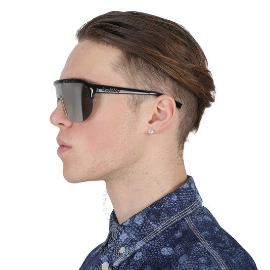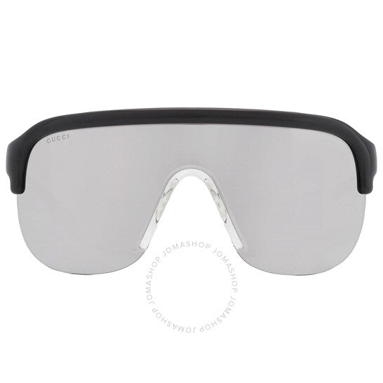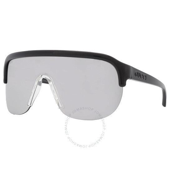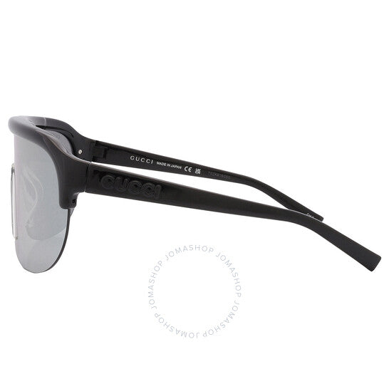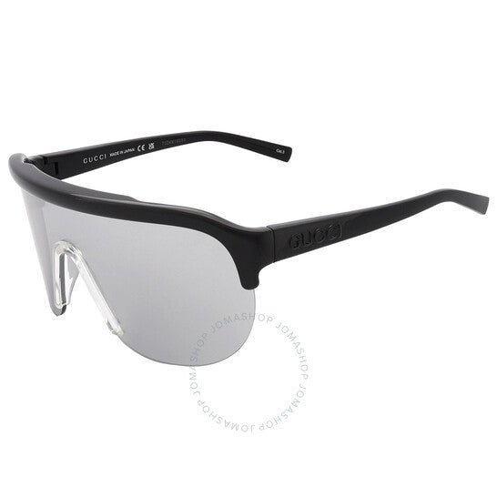 نظارات شمسية غوتشي. رقم السلسلة: GG1645S. رمز اللون: 003. الشكل: درع. عرض العدسة: 99 مم. جسر العدسة: 1 مم. طول الذراع: 125 مم. حماية 100% من الأشعة فوق البنفسجية. غير مستقطب. مادة الإطار: بلاستيك. لون الإطار: أسود. نوع العدسات: فضي. نمط الحافة: حافة كاملة. رمز UPC/EAN: 889652489674. نظارات شمسية غوتشي فضية للرجال GG1645S 003 99.