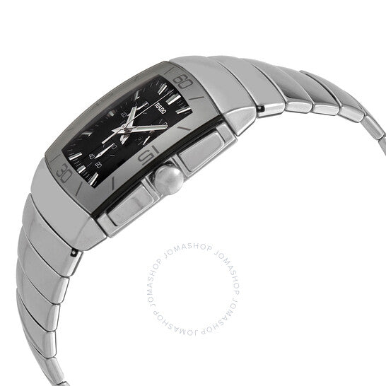 علبة سيراميك بلون البلاتين مع سوار سيراميك بلون البلاتين. إطار ثابت بلون البلاتين. ميناء أسود بعقارب مضيئة ومؤشرات ساعات. مؤشرات دقائق حول الحافة الخارجية. عقارب ومؤشرات مضيئة. يظهر عرض التاريخ عند موضع الساعة الرابعة. كرونوغراف - ثلاثة أقراص فرعية تعرض: عُشر الثانية، 30 دقيقة، و60 ثانية. حركة كوارتز. كريستال ياقوت مقاوم للخدش. تاج سيراميك. غطاء خلفي صلب. أبعاد العلبة: 34 مم × 30 مم. مشبك قابل للطي. مقاومة للماء حتى عمق 30 مترًا/100 قدم. الوظائف: الساعات، الدقائق، الثواني، التقويم، الكرونوغراف. ساعة رادو سينترا كرونوغراف سوداء للرجال، R13434172