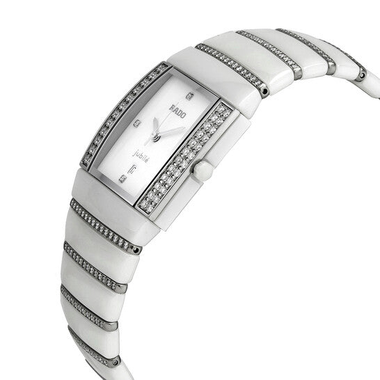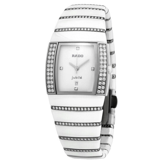 علبة من السيراميك الأبيض مع سوار من السيراميك الأبيض مرصع بالألماس. إطار ثابت فضي اللون مرصع بالألماس. ميناء أبيض بعقارب فضية اللون. يظهر الألماس عند مواضع الساعات 3 و6 و9 و12. نوع الميناء: تناظري. عرض التاريخ أعلى موضع الساعة 6. آلية حركة كوارتز. زجاج ياقوت مقاوم للخدش. تاج قابل للسحب/الدفع. غطاء خلفي صلب. شكل العلبة: تونيو. أبعاد العلبة: 29 مم × 25 مم. سُمك العلبة: 8 مم. مشبك قابل للطي بزر ضغط. مقاومة للماء حتى عمق 30 مترًا / 100 قدم. الوظائف: التاريخ، الساعة، الدقائق، الثواني. سلسلة سينترا. طراز ساعة رسمية. علامة الساعة: صناعة سويسرية. ساعة رادو سينترا دايموند نسائية بمينا بيضاء R13632709.