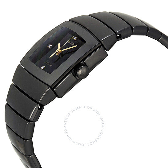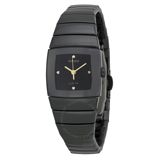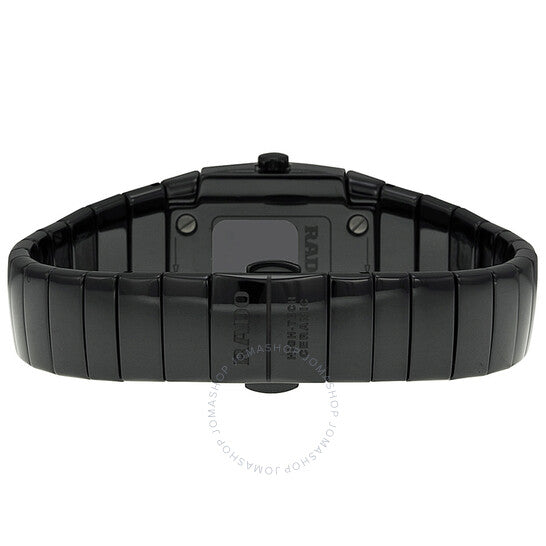 علبة من السيراميك الأسود مع سوار من السيراميك الأسود. إطار ثابت من السيراميك الأسود. ميناء أسود بعقارب ذهبية اللون وعلامات ماسية عند موضعي الساعة الرابعة والنصف. حركة كوارتز. زجاج ياقوتي مقاوم للخدش. غطاء خلفي صلب. أبعاد العلبة: ٢٩ مم × ٢٢ مم. سُمكها: ٨ مم. مشبك قابل للطي بزر ضغط. مقاومة للماء حتى عمق ٣٠ مترًا/١٠٠ قدم. الوظائف: الساعات، الدقائق، الثواني. ساعة رادو سينترا النسائية R13726712.