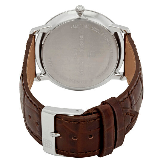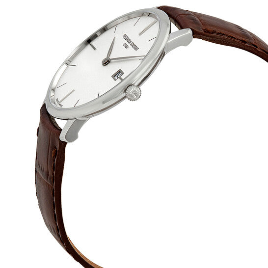 علبة من الفولاذ المقاوم للصدأ مع سوار جلدي بني. إطار ثابت من الفولاذ المقاوم للصدأ. ميناء أبيض بعقارب فضية اللون وعلامات ساعات. نوع الميناء: تناظري. عرض التاريخ عند موضع الساعة 3. آلية حركة كوارتز. زجاج ياقوت مقاوم للخدش. تاج قابل للسحب/الدفع. غطاء خلفي صلب. شكل دائري. حجم العلبة: 39 مم. سمكها: 6 مم. عرض السوار: 20 مم. مشبك تانغ. مقاومة للماء حتى عمق 30 مترًا / 100 قدم. الوظائف: التاريخ، الساعة، الدقائق. طراز ساعة رسمية. علامة الساعة: صناعة سويسرية. ساعة فريدريك كونستانت سليملاين للرجال بمينا أبيض، FC-220BRS5S6.