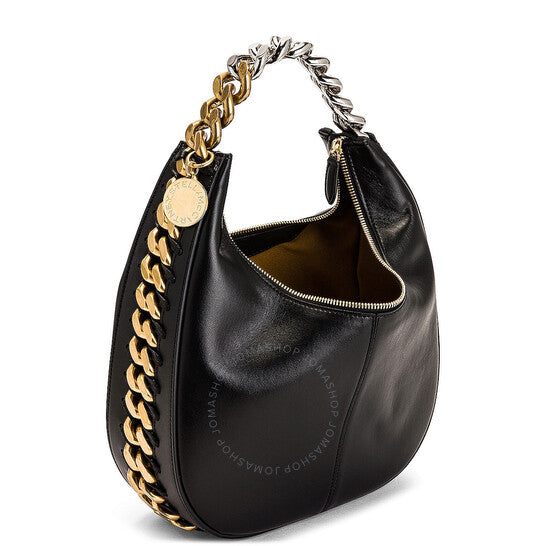حقيبة كتف نسائية من ستيلا مكارتني. رمز المنتج: 700272 W8839-1000. تجمع حقيبة كتف ستيلا مكارتني فرايم هوبو بين التصميم الجريء والحرفية المستدامة. تتميز بحزام سلسلة أنيق وأجزاء معدنية أنيقة بلونين، مما يضفي عليها لمسة عصرية أنيقة. يضمن السحاب إغلاقًا آمنًا، بينما يوفر الجيب الداخلي المنزلق تنظيمًا إضافيًا. مبطنة بالكامل، تجمع بين العملية والأناقة. مصنوعة من 51% بوليستر و49% بولي يوريثان، تُعد فرايم هوبو خيارًا مستدامًا. الأبعاد: 10.6 بوصة عرض × 3.3 بوصة عمق × 7.7 بوصة ارتفاع. صنع في إيطاليا.