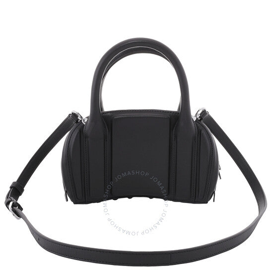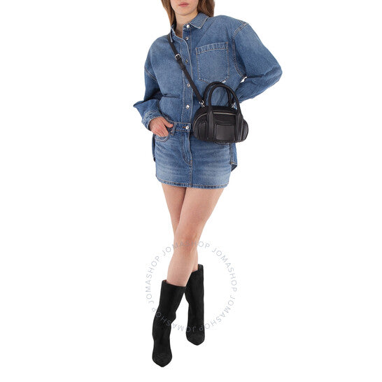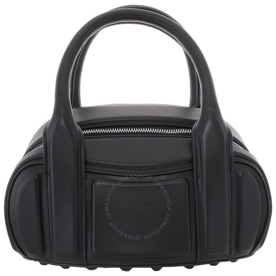 حقيبة تي باي ألكسندر وانغ النسائية بمقبض علوي. رمز المنتج: 20124R90L-BLACK. اللون: أسود. المقاس: 9 بوصات عرض × 5 بوصات ارتفاع × 4 بوصات عمق. حقيبة روك صغيرة بمقبض علوي من تي باي ألكسندر وانغ. تتميز بتصميم مقسم إلى أجزاء معدنية فضية اللون، وسحاب إغلاق شامل، وحزام كتف قابل للتعديل والفصل، وختم داخلي للشعار، وفتحات للبطاقات، وخياطة متناسقة. جلد طبيعي 100%.