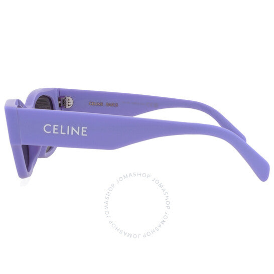 نظارات شمسية من سيلين. رقم السلسلة: CL40197U. رمز اللون: 78A. الشكل: عين القطة. عرض العدسة: 54 مم. جسر العدسة: 18 مم. طول الذراع: 145 مم. حماية 100% من الأشعة فوق البنفسجية. غير مستقطبة. مادة الإطار: أسيتات. لون الإطار: بنفسجي لامع. نوع العدسات: دخاني. نمط الحافة: حافة كاملة. رمز UPC/EAN: 192337121302. نظارات شمسية نسائية من سيلين، دخانية، عين القطة، CL40197U، 78A، 54.