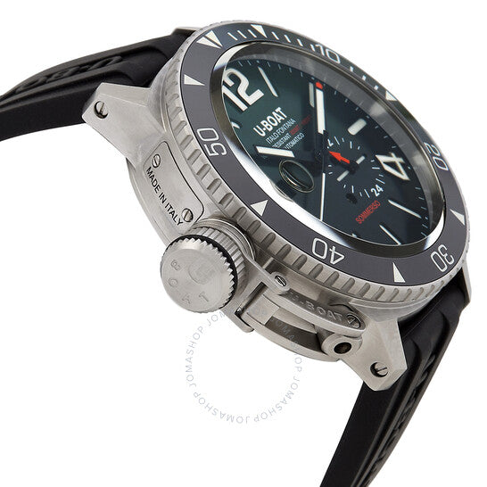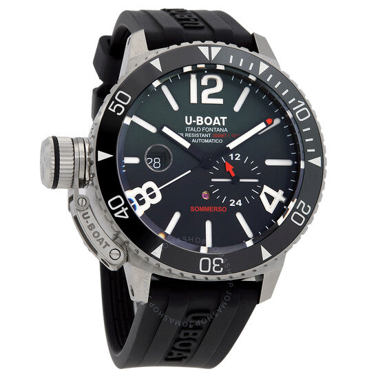 علبة فضية اللون من الفولاذ المقاوم للصدأ مع سوار مطاطي أسود. إطار أسود من الفولاذ المقاوم للصدأ. ميناء أخضر بعقارب سوداء وأرقام عربية وعلامات ساعات. علامات دقائق حول الحافة الخارجية. نوع الميناء: تناظري. عرض التاريخ عند موضع الساعة 9. حركة أوتوماتيكية. زجاج ياقوت مقاوم للخدش. تاج لولبي. غطاء خلفي صلب. شكل دائري، حجم العلبة: 46 مم. مقاومة للماء حتى عمق 300 متر / 1000 قدم. الوظائف: التاريخ، الساعة، الدقائق، الثواني. سلسلة سومرسو. طراز ساعة الغوص. ساعة يو بوت سومرسو أوتوماتيكية للرجال بمينا أخضر 9520.
