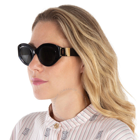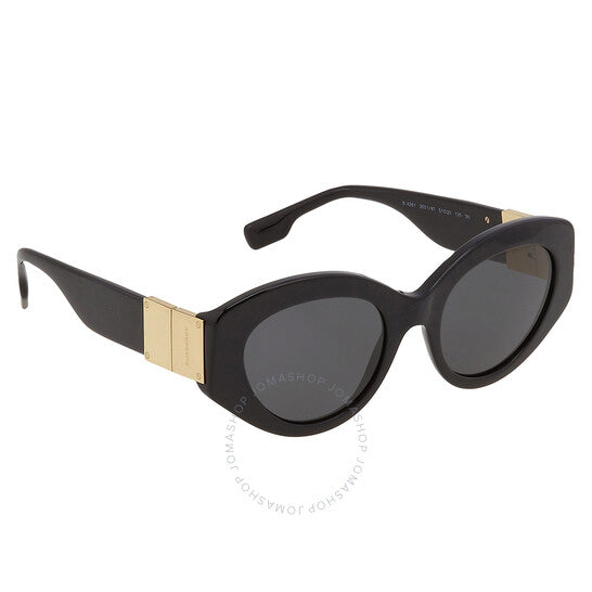 نظارات شمسية من بربري. سلسلة صوفيا. رقم السلسلة: BE4361. رمز اللون: 300187. الشكل: عين القطة. عرض العدسة: 51 مم. جسر العدسة: 20 مم. طول الذراع: 135 مم. حماية 100% من الأشعة فوق البنفسجية. غير مستقطب. مادة الإطار: بلاستيك. لون الإطار: أسود. نوع العدسات: رمادي داكن. نمط الحافة: حافة كاملة. رمز UPC/EAN: 8056597595773. نظارات شمسية بربري صوفيا رمادية داكنة نسائية بإطار عين القطة BE4361 300187 51.