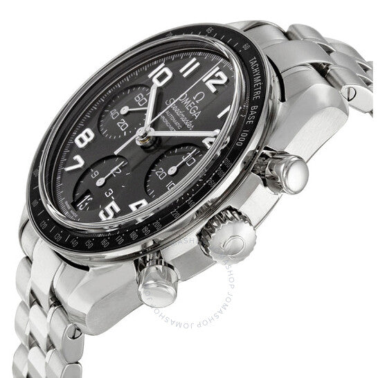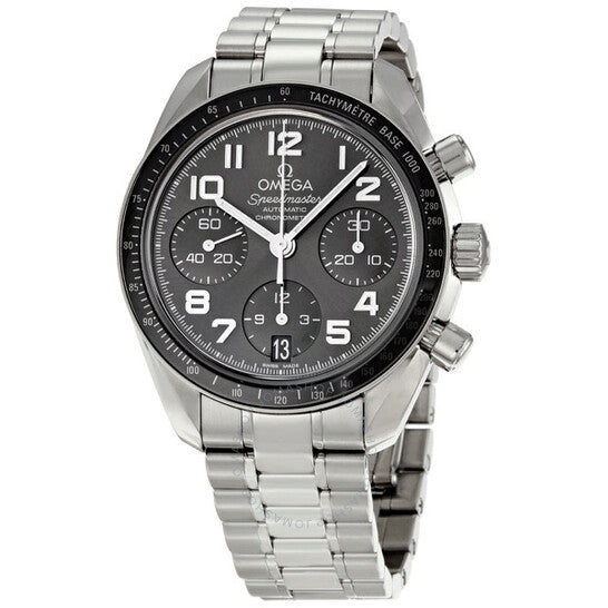 علبة من الفولاذ المقاوم للصدأ مع سوار من الفولاذ المقاوم للصدأ. إطار ثابت مطلي بالأيونات السوداء مع مقياس سرعة الدوران. ميناء رمادي بعقارب مضيئة وعلامات ساعات عربية. علامات دقائق حول الحافة الخارجية. نوع الميناء: تناظري. عقارب وعلامات مضيئة. يظهر عرض التاريخ عند موضع الساعة السادسة. كرونوغراف - ثلاثة أقراص فرعية تعرض: ١٢ ساعة، ٣٠ دقيقة، و٦٠ ثانية. حركة ذاتية التعبئة. محرك أوميغا ٣٣٠٤. كريستال ياقوت مقاوم للخدش. قطر العلبة: ٣٨ مم. شكل العلبة دائري. مشبك قابل للطي. مقاومة للماء حتى عمق ١٠٠ متر/٣٣٠ قدمًا. الوظائف: الساعات، الدقائق، الثواني، التاريخ، الكرونوغراف، مقياس سرعة الدوران. طراز ساعة فاخرة. علامة الساعة: صناعة سويسرية. ساعة أوميغا سبيدماستر كرونوغراف أوتوماتيكية ٣٨ مم، رقمها ٣٢٤.٣٠.٣٨.٤٠.٠٦.٠٠١.