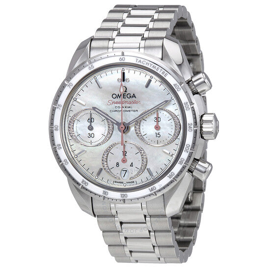 علبة من الفولاذ المقاوم للصدأ مع سوار من الفولاذ المقاوم للصدأ. إطار ثابت من الفولاذ المقاوم للصدأ مع حلقة علوية من السيراميك الأبيض تُظهر علامات مقياس سرعة الدوران. ميناء أبيض من عرق اللؤلؤ مع عقارب وعلامات ساعات فضية اللون. علامات دقائق حول الحافة الخارجية. نوع الميناء: تناظري. عقارب وعلامات مضيئة. عرض التاريخ عند موضع الساعة السادسة. كرونوغراف - ثلاثة أقراص فرعية تعرض: 60 ثانية، 30 دقيقة، و12 ساعة. حركة أوتوماتيكية أوميغا كاليبر 3330 مع احتياطي طاقة لمدة 52 ساعة. كريستال ياقوت مقاوم للخدش. تاج سحب/دفع. غطاء خلفي صلب. حجم العلبة: 38 مم. سمك العلبة: 15 مم. شكل العلبة دائري. عرض السوار: 18 مم. مشبك قابل للطي بزر ضغط. مقاومة للماء حتى عمق 100 متر / 330 قدمًا. الوظائف: كرونوغراف، تاريخ، ساعة، دقيقة، ثانية، ميزان محوري، كرونومتر. طراز ساعة فاخرة. ملصق الساعة: صناعة سويسرية. ساعة أوميجا سبيدماستر كرونوغراف أوتوماتيكية للرجال 324.30.38.50.55.001.