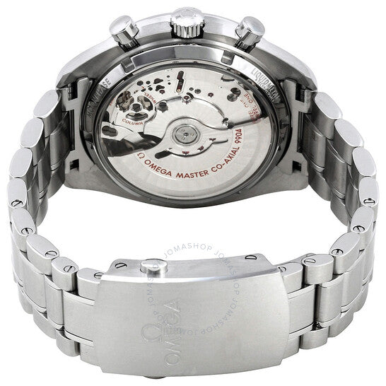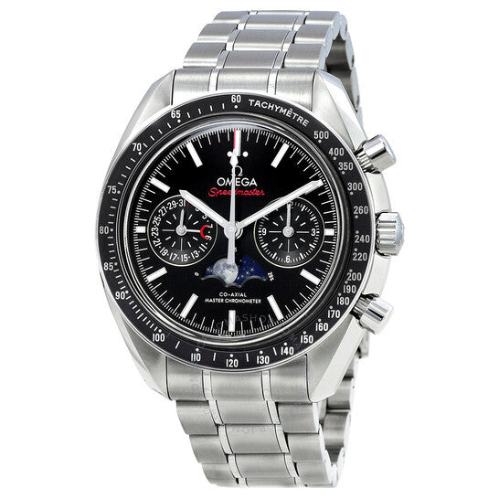 علبة من الفولاذ المقاوم للصدأ مع سوار من الفولاذ المقاوم للصدأ. إطار ثابت من الفولاذ المقاوم للصدأ مع حلقة علوية من السيراميك الأسود تُظهر علامات التاكيميتر. ميناء أسود بعقارب فضية مضيئة وعلامات ساعات. علامات دقائق حول الحافة الخارجية. نوع الميناء: تناظري. عقارب وعلامات مضيئة. ميناءان فرعيان يعرضان: التاريخ، و١٢ ساعة. يعرضان أطوار القمر. حركة أوتوماتيكية من أوميغا كاليبر ٩٩٠٤ مع احتياطي طاقة ٦٠ ساعة. زجاج من الياقوت المقاوم للخدش. تاج قابل للسحب/الدفع. غطاء خلفي شفاف. حجم العلبة: ٤٤.٢٥ مم. شكل العلبة دائري. عرض السوار: ٢١ مم. مشبك قابل للطي بزر ضغط. مقاومة للماء حتى عمق ١٠٠ متر / ٣٣٠ قدمًا. الوظائف: طور القمر، كرونوغراف، تاكيميتر، تاريخ، ساعات، دقائق، ثوانٍ، ميزان محوري، كرونومتر. طراز ساعة فاخرة. ملصق الساعة: صناعة سويسرية. ساعة أوميجا سبيد ماستر مون فيز كرونوغراف أوتوماتيكية للرجال 304.30.44.52.01.001.