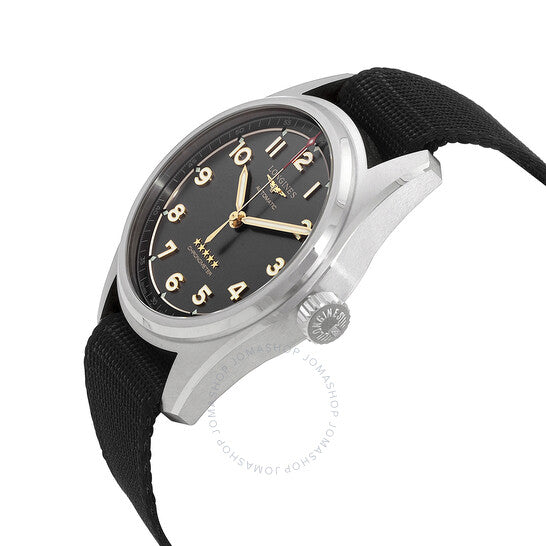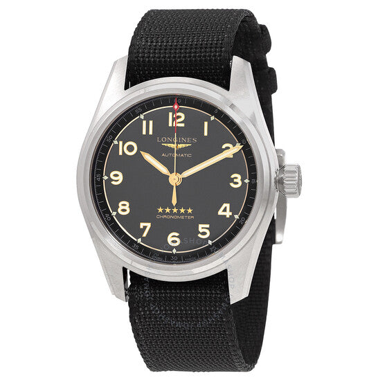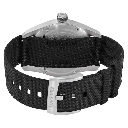 علبة تيتانيوم رمادية اللون مع سوار نايلون أسود. إطار ثابت من التيتانيوم الرمادي. ميناء أسود من الأنثراسيت مع عقارب ذهبية مضيئة وعلامات ساعات بأرقام عربية. علامات دقائق بأرقام عربية (بفاصل ٥ دقائق). علامات دقائق حول الحافة الخارجية. نوع الميناء: تناظري. عقارب وعلامات مضيئة. حركة لونجين أوتوماتيكية من عيار L888.4، مبنية على ETA A31.L11، تحتوي على ٢١ جوهرة، تنبض بتردد ٢٥٢٠٠ ذبذبة في الساعة، ولديها احتياطي طاقة يدوم حوالي ٦٤ ساعة. زجاج من الياقوت المقاوم للخدش. تاج لولبي. غطاء خلفي صلب. شكل دائري. حجم العلبة: ٤٠ مم. سمكها: ١٢.٢ مم. عرض السوار: ٢١ مم. مشبك تانغ. مقاومة للماء حتى عمق ١٠٠ متر / ٣٣٠ قدمًا. الوظائف: الساعات، الدقائق، الثواني. معلومات إضافية: العلبة الأصلية، دليل الاستخدام (ملحقات كاملة). سلسلة سبيريت. تصميم ساعة فاخر. ملصق الساعة: صناعة سويسرية. ساعة لونجين سبيريت أوتوماتيكية للرجال بمينا أسود L3.810.1.53.2.
