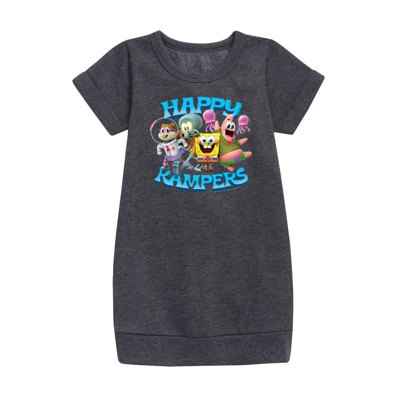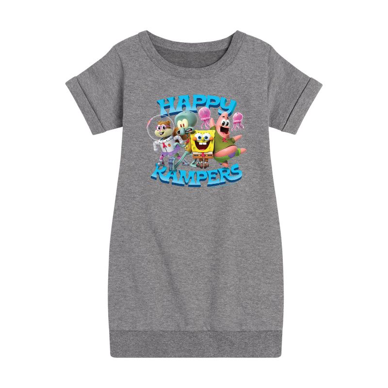 كامب كورال - هابي كامبرز - فستان صوف للفتيات الصغيرات والشابات - انغمسي في متعة بيكيني بوتوم مع ملابس سبونج بوب سكوير بانتس الجرافيكية! تتميز هذه المجموعة بتصاميم ملونة لسبونج بوب، وباتريك، وسكويدوارد، وساندي، وغيرهم، وتضفي لمسةً من الفكاهة واللحظات التي لا تُنسى على المسلسل. مثالية لمحبي المسلسل من جميع الأعمار، حيث تضفي لمسةً شخصيةً مميزةً على أي خزانة ملابس.