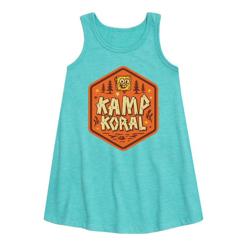كامب كورال - شارة كامب كورال - فستان بتصميم حرف A للفتيات الصغيرات والشابات - انغمسي في متعة بيكيني بوتوم مع ملابس سبونج بوب سكوير بانتس الجرافيكية! تتميز هذه المجموعة بتصاميم ملونة لسبونج بوب، وباتريك، وسكويدوارد، وساندي، وغيرهم، وتضفي لمسة من الفكاهة واللحظات التي لا تُنسى على المسلسل. مثالية لمحبي المسلسل من جميع الأعمار، حيث تضفي لمسة شخصية مميزة على أي خزانة ملابس.