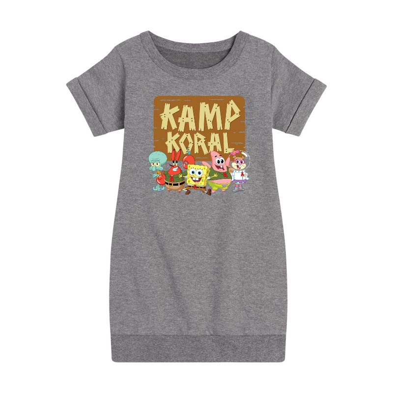 كامب كورال - مجموعة كامب كورال - فستان صوف للفتيات الصغيرات والشابات - انغمسي في متعة بيكيني بوتوم مع ملابس سبونج بوب سكوير بانتس الجرافيكية! تتميز هذه المجموعة بتصاميم ملونة لسبونج بوب، وباتريك، وسكويدوارد، وساندي، وغيرهم، وتضفي لمسة من الفكاهة واللحظات التي لا تُنسى على المسلسل. مثالية لجميع الأعمار، تضفي هذه القطع لمسة شخصية مميزة على أي خزانة ملابس.