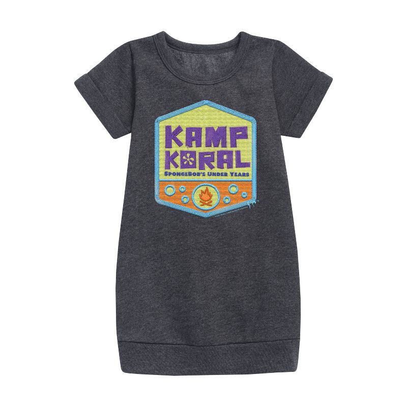 كامب كورال - شارة شعار كامب كورال - فستان صوف للفتيات الصغيرات والشابات - انغمسي في متعة بيكيني بوتوم مع ملابس سبونج بوب سكوير بانتس الجرافيكية! تتميز هذه المجموعة بتصاميم ملونة لسبونج بوب، وباتريك، وسكويدوارد، وساندي، وغيرهم، وتضفي لمسة من الفكاهة واللحظات التي لا تُنسى على المسلسل. مثالية لمحبي المسلسل من جميع الأعمار، حيث تضفي لمسة شخصية مميزة على أي خزانة ملابس.
