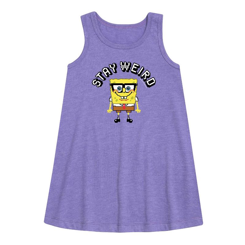 سبونج بوب سكوير بانتس - ابق غريبًا - فستان بقصة A للبنات الصغيرات والشابات - انغمسي في متعة بيكيني بوتوم مع ملابس سبونج بوب سكوير بانتس الجرافيكية! تتميز هذه المجموعة بتصاميم ملونة لسبونج بوب، وباتريك، وسكويدوارد، وساندي، وغيرهم، وتضفي لمسة من الفكاهة واللحظات التي لا تُنسى على المسلسل. مثالية لمحبي المسلسل من جميع الأعمار، حيث تضفي لمسة شخصية مميزة على أي خزانة ملابس.