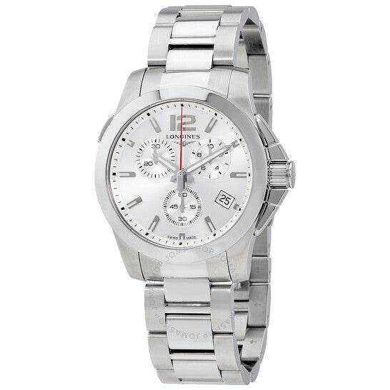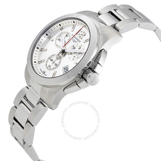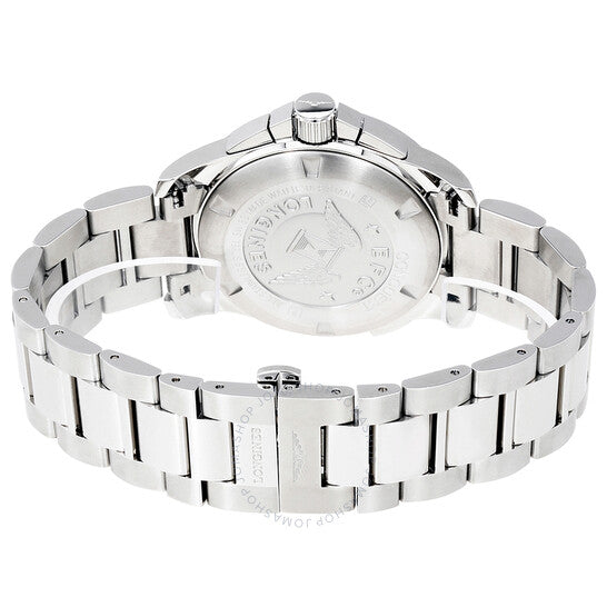 علبة من الفولاذ المقاوم للصدأ مع سوار من الفولاذ المقاوم للصدأ. إطار ثابت من الفولاذ المقاوم للصدأ. ميناء فضي مع عقارب مضيئة باللون الفضي وعلامات ساعات. يظهر رقم عربي عند موضع الساعة ١٢. علامات الدقائق. علامات ١/١٠٠ ثانية حول الحافة الخارجية. نوع الميناء: تناظري. عقارب وعلامات مضيئة. عرض التاريخ عند موضع الساعة ٤. كرونوغراف - ثلاثة أقراص فرعية تعرض: عداد ٦٠ ثانية، ٣٠ دقيقة، و١/١٠ ثانية. حركة كوارتز لونجين عيار L442. كريستال ياقوت مقاوم للخدش. تاج لولبي. غطاء خلفي صلب. شكل دائري. حجم الهيكل: ٤١ مم. سمك الهيكل: ١٥.١٥ مم. عرض السوار: ١٨ مم. مشبك قابل للطي. مقاومة للماء حتى عمق ٣٠٠ متر / ١٠٠٠ قدم. الوظائف: كرونوغراف، تاريخ، ساعة، دقيقة، ثانية. طراز ساعة غوص. ملصق الساعة: صناعة سويسرية. ساعة لونجين سبورت كونكويست كرونوغراف للرجال L37024766.