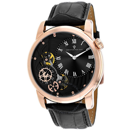 علبة من الفولاذ المقاوم للصدأ بلون الذهب الوردي مع سوار جلدي أسود. إطار ثابت من الفولاذ المقاوم للصدأ بلون الذهب الوردي. ميناء أسود بعقارب فضية اللون وعلامات ساعات بأرقام رومانية. علامات دقائق حول الحافة الخارجية. نوع الميناء: تناظري. حركة كوارتز. زجاج معدني مقاوم للخدش. هيكل دائري، مقاس العلبة: 44 مم، سمكها: 14 مم. عرض السوار: 24 مم، طوله: 7.5 بوصة. مشبك بإبزيم. مقاومة للماء حتى عمق 100 متر / 330 قدمًا. الوظائف: الساعة، الدقائق. سلسلة سبروكيت أوتو-كوارتز. ساعة أنيقة. ساعة كريستيان فان سانت سبروكيت أوتو-كوارتز للرجال، بمينا أسود، CV1547.