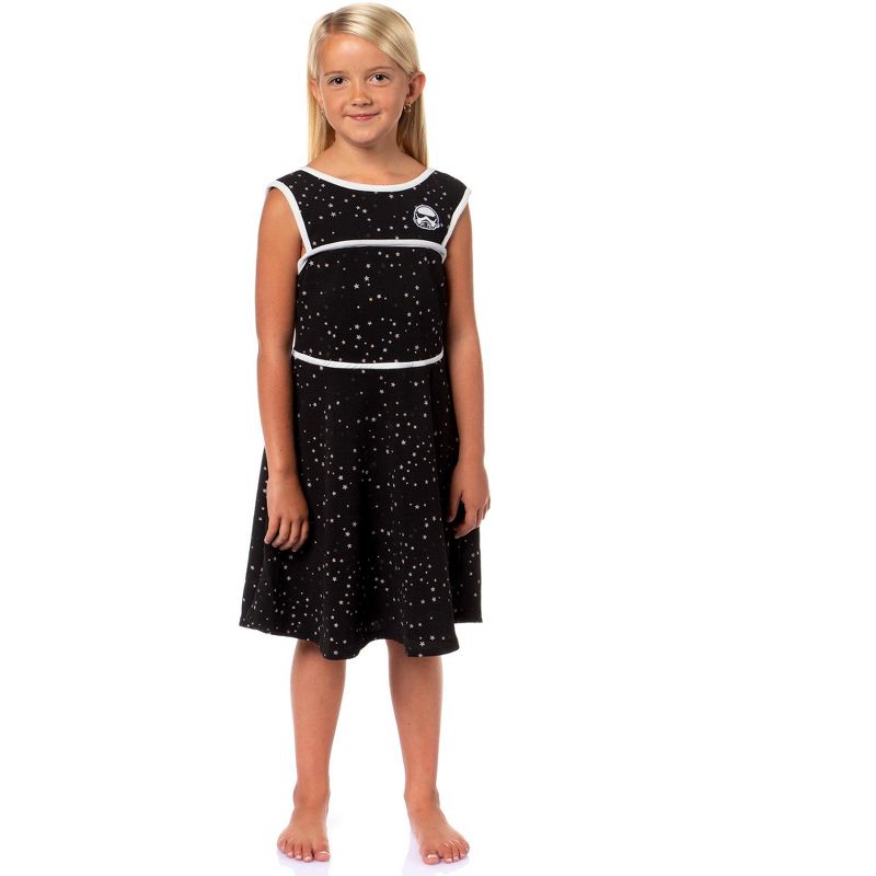 ستكون القوة مع صغيرتكِ وهي ترتدي فستان "تسوم تسوم ستورم تروبر" المتزلج للفتيات، المستوحى من عالم حرب النجوم. مصنوع من قماش جاكار ناعم ومُحكم، مزين بطبعة نجوم تغطيه بالكامل، وتطريز "تسوم تسوم ستورم تروبر" على الجهة الأمامية. يكتمل هذا الفستان بدون أكمام بتصميم "ستار وورز ستورم تروبر" بفتحة رقبة دائرية وحاشية متزلجة، وهو فستان مستوحى من حرب النجوم. متوفر باللونين الأسود والأبيض. مصنوع من 95% بوليستر / 5% سباندكس.