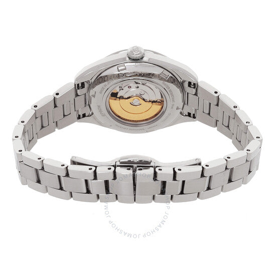 علبة وسوار من الفولاذ المقاوم للصدأ فضي اللون. إطار ثابت من الفولاذ المقاوم للصدأ فضي اللون. ميناء بنفسجي مع عقارب وعلامات ساعات فضية اللون. ماسة عند موضع الساعة ١٢. علامات دقائق حول الحافة الخارجية. نوع الميناء: تناظري. حركة أوتوماتيكية من أورينت كاليبر ٥٥C٢٢. زجاج ياقوت مقاوم للخدش. غطاء خلفي شفاف. شكل العلبة دائري، مقاسها ٣٠ مم. مقاومة للماء حتى عمق ٥٠ مترًا / ١٦٥ قدمًا. الوظائف: ساعة، دقيقة. سلسلة أورينت ستار. تصميم كاجوال. اسم الساعة: Japan Movt. ساعة أورينت ستار أوتوماتيكية نسائية بمينا بنفسجي RE-ND0102R00B.