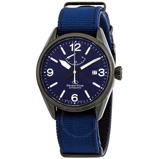علبة من الفولاذ المقاوم للصدأ مطلية باللون الأسود مع سوار من النايلون الأزرق. إطار ثابت مطلي باللون الأسود. ميناء أزرق مع عقارب ومؤشرات ساعات فضية مضيئة. أرقام عربية تُشير إلى مواقع الساعات 3 و6 و9 و12. علامات دقائق حول الحافة الخارجية. نوع الميناء: تناظري. عقارب ومؤشرات مضيئة. عرض التاريخ عند موضع الساعة 3. مؤشر احتياطي الطاقة. حركة أوتوماتيكية من عيار F6N43 باحتياطي طاقة يصل إلى 50 ساعة. زجاج من الياقوت المقاوم للخدش. تاج لولبي. غطاء خلفي شفاف. شكل دائري. حجم العلبة: 41 مم. سمكها: 12 مم. عرض السوار: 20 مم. مشبك قابل للطي بزر ضغط. مقاومة للماء حتى عمق 100 متر / 330 قدمًا. الوظائف: التاريخ، الساعة، الدقيقة، الثانية. سلسلة ستار. تصميم ساعة كاجوال. ملصق الساعة: Japan Movt. ساعة أورينت ستار زرقاء اللون، نايلون أزرق للرجال، RE-AU0207L00B.