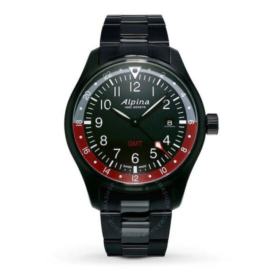 علبة وسوار من الفولاذ المقاوم للصدأ مطليان باللون الأسود بتقنية PVD. إطار ثابت من الفولاذ المقاوم للصدأ مطلي باللون الأسود بتقنية PVD. ميناء أسود بعقارب سوداء وعلامات ساعات رقمية عربية. علامات ٢٤ ساعة. علامات دقائق حول الحافة الخارجية. نوع الميناء: تناظري. عقارب وعلامات مضيئة. عرض التاريخ عند موضع الساعة ٣. حركة كوارتز من عيار Alpina AL-247. زجاج ياقوت مقاوم للخدش. تاج قابل للسحب/الدفع. غطاء خلفي صلب. شكل دائري، مقاس العلبة: ٤٢ مم، سمكها: ٩.٤ مم. عرض السوار: ٢١ مم. مقاومة للماء حتى عمق ١٠٠ متر / ٣٣٠ قدمًا. الوظائف: توقيت غرينتش، المنطقة الزمنية الثانية، الساعات، الدقائق، الثواني، التاريخ. سلسلة Startimer Pilot. طراز ساعة Pilot. علامة الساعة: صناعة سويسرية. ساعة Alpina Startimer Pilot كوارتز للرجال بمينا أسود AL-247BR4FBS6B.