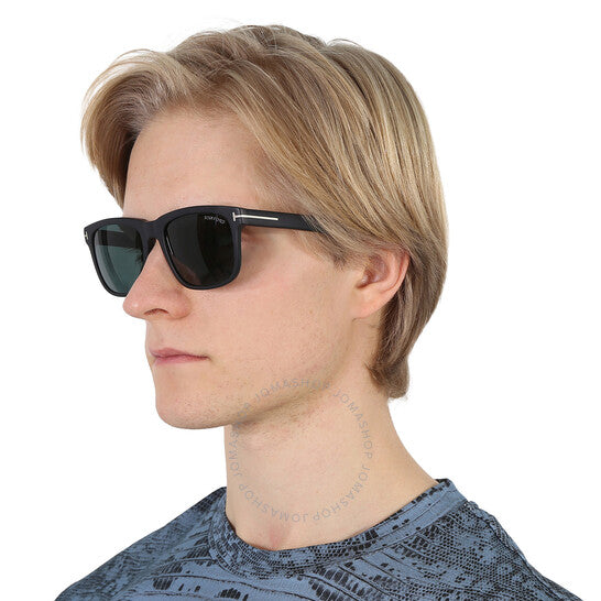 نظارات شمسية من توم فورد. سلسلة ستيفنسون. رمز اللون: 02N. الشكل: مربع. عرض العدسة: 56 مم. جسر العدسة: 19 مم. طول الذراع: 145 مم. حماية 100% من الأشعة فوق البنفسجية. مادة الإطار: بلاستيك. لون الإطار: أسود مطفي. نوع العدسات: أزرق مخضر داكن. نمط الحافة: حافة كاملة. رمز UPC/EAN: 889214120762. نظارات شمسية توم فورد ستيفنسون مربعة للرجال، لون أزرق مخضر داكن، FT0775 02N 56.