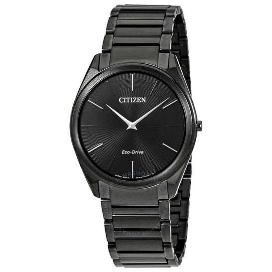 علبة وسوار من الفولاذ المقاوم للصدأ باللون الأسود. إطار ثابت باللون الأسود. ميناء أسود مزخرف بنقشة غيوشيه مع عقارب وعلامات ساعات فضية اللون. نوع الميناء: تناظري. حركة سيتيزن إيكو-درايف G870 إيكو-درايف. زجاج من الياقوت المقاوم للخدش. تاج قابل للسحب/الدفع. غطاء خلفي صلب. شكل دائري. حجم العلبة: 38 مم. سمكها: 4.7 مم. عرض السوار: 21 مم. مشبك قابل للطي بزر ضغط مزدوج. مقاومة للماء حتى عمق 30 مترًا / 100 قدم. الوظائف: الساعات، الدقائق. تصميم كاجوال. علامة الساعة: Japan Movt. ساعة سيتيزن ستيليتو إيكو-درايف للرجال بمينا أسود AR3075-51E.