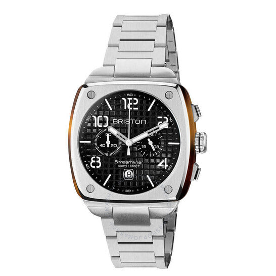 علبة أسيتات بنية اللون مع سوار فضي اللون من الفولاذ المقاوم للصدأ. إطار ثابت من الفولاذ المقاوم للصدأ فضي اللون. ميناء أسود بعقارب فضية اللون وأرقام عربية وعلامات ساعات. علامات دقائق حول الحافة الخارجية. نوع الميناء: تناظري. عقارب وعلامات مضيئة. عرض التاريخ عند موضع الساعة السادسة. كرونوغراف - ميناءان فرعيان يعرضان: 60 ثانية و24 ساعة. حركة كوارتز ميوتا كاليبر OS21. زجاج معدني مقاوم للخدش. تاج قابل للسحب/الدفع. غطاء خلفي صلب. شكل العلبة وسادة، مقاسها: 42 مم. عرض السوار: 20 مم. مشبك قابل للطي مع مفتاح أمان. مقاومة للماء حتى عمق 100 متر / 330 قدمًا. الوظائف: كرونوغراف، تاريخ، توقيت غرينتش، منطقة زمنية ثانية، ساعة، دقيقة، ثانية. سلسلة ستريملاينر. طراز ساعة عصري. علامة الساعة: جابان موف. ساعة بريستون ستريملاينر للرجال بمينا أسود 23142.ST1.SB.