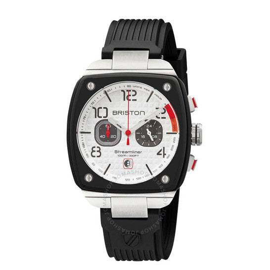 علبة أسيتات سوداء مع سوار مطاطي أسود. إطار ثابت من الفولاذ المقاوم للصدأ أسود. ميناء أبيض بعقارب فضية اللون وأرقام عربية وعلامات ساعات. علامات دقائق حول الحافة الخارجية. نوع الميناء: تناظري. عقارب وعلامات مضيئة. عرض التاريخ عند موضع الساعة السادسة. كرونوغراف - ميناءان فرعيان يعرضان: 60 ثانية و24 ساعة. حركة كوارتز ميوتا كاليبر OS21. زجاج معدني مقاوم للخدش. تاج قابل للسحب/الدفع. غطاء خلفي صلب. شكل العلبة وسادة، مقاسها: 42 مم. عرض السوار: 20 مم. مشبك بإبزيم. مقاومة للماء حتى عمق 100 متر / 330 قدم. الوظائف: كرونوغراف، تاريخ، توقيت غرينتش، منطقة زمنية ثانية، ساعة، دقيقة، ثانية. سلسلة ستريملاينر. تصميم عصري. علامة الساعة: جابان موف. ساعة بريستون ستريملاينر للرجال بمينا أبيض 24142.SA.B.2.RB.