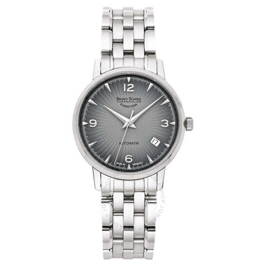 سلسلة طرازات شتوتغارت هي تكريم لموطن المؤسس في سوابيا، برونو سونله نفسه. علبة وسوار من الفولاذ المقاوم للصدأ فضي اللون. إطار ثابت من الفولاذ المقاوم للصدأ فضي اللون. ميناء رمادي اللون مع عقارب فضية اللون وأرقام عربية وعلامات ساعات. علامات دقائق حول الحافة الخارجية. نوع الميناء: تناظري. عرض التاريخ عند موضع الساعة الرابعة. حركة أوتوماتيكية من طراز Sellita Caliber SW200-1، تحتوي على 26 جوهرة، تنبض بمعدل 28800 ذبذبة في الساعة، ولديها احتياطي طاقة لمدة 38 ساعة تقريبًا. زجاج ياقوت مقاوم للخدش. تاج قابل للسحب/الدفع. شكل العلبة دائري، مقاس العلبة: 36 مم، سمك العلبة: 10.5 مم. عرض السوار: 18 مم. مشبك قابل للطي. مقاومة للماء حتى عمق 50 مترًا / 165 قدمًا. الوظائف: التاريخ، الساعة، الدقائق، الثواني. سلسلة شتوتغارت. تصميم ساعة كاجوال. ساعة برونو سونل شتوتغارت أوتوماتيكية للرجال بمينا رمادي 17-12174-862.