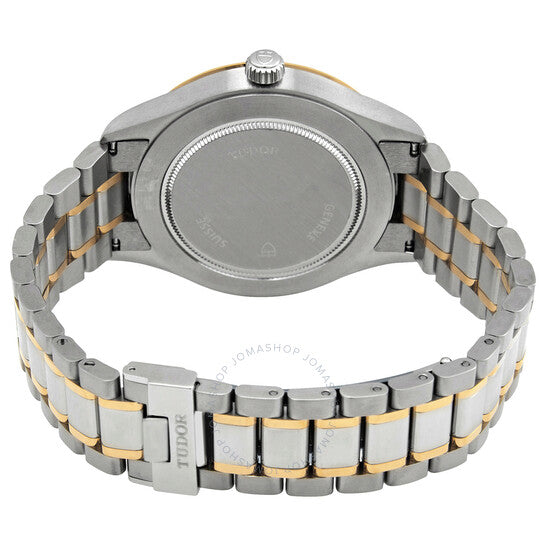 علبة من الفولاذ المقاوم للصدأ مع سوار من الفولاذ المقاوم للصدأ بلمسات من الذهب الأصفر. إطار ثابت مُخدّد من الذهب الأصفر. ميناء بلون الشمبانيا مع عقارب ومؤشرات ساعات ذهبية صفراء. مرصعة بالألماس عند الساعة 3 و6 و9. مؤشرات دقائق حول الحافة الخارجية. نوع الميناء: تناظري. عرض التاريخ عند الساعة 3. حركة أوتوماتيكية من عيار 2824. كريستال ياقوت مقاوم للخدش. تاج لولبي. غطاء خلفي صلب. شكل دائري. حجم العلبة: 41 مم. عرض السوار: 20 مم. مشبك قابل للطي. مقاومة للماء حتى عمق 100 متر / 330 قدمًا. الوظائف: التاريخ، الساعة، الدقيقة، الثانية. سلسلة الطراز. طراز ساعة فاخرة. علامة الساعة: صناعة سويسرية. ساعة رجالية أوتوماتيكية طراز تيودور بمينا شمبانيا مرصعة بالألماس، طراز M12713-0007.