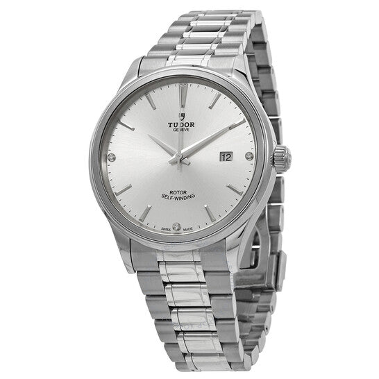 علبة من الفولاذ المقاوم للصدأ مع سوار من الفولاذ المقاوم للصدأ. إطار ثابت من الفولاذ المقاوم للصدأ. ميناء فضي اللون بعقارب فضية اللون وعلامات ساعات. مرصع بالألماس عند الساعة 3 و6 و9. علامات دقائق حول الحافة الخارجية. نوع الميناء: تناظري. عرض التاريخ عند الساعة 3. حركة أوتوماتيكية من عيار تيودور T601، مبنية على ETA 2824، تحتوي على 25 جوهرة، تنبض بمعدل 28800 ذبذبة في الساعة، ولديها احتياطي طاقة يدوم حوالي 38 ساعة. زجاج من الياقوت المقاوم للخدش. تاج لولبي. غطاء خلفي صلب. شكل دائري. حجم الهيكل: 41 مم. مشبك قابل للطي مع مفتاح أمان. مقاومة للماء حتى عمق 100 متر / 330 قدمًا. الوظائف: التاريخ، الساعة، الدقيقة، الثانية. سلسلة الطراز. طراز ساعة فاخرة. علامة الساعة: صناعة سويسرية. ساعة رجالية أوتوماتيكية من طراز تيودور، مرصعة بالألماس، بمينا فضي، طراز M12700-0003.