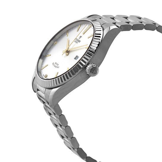 علبة من الفولاذ المقاوم للصدأ مع سوار من الفولاذ المقاوم للصدأ. إطار ثابت مُخدّد من الفولاذ المقاوم للصدأ. ميناء فضي اللون بعقارب ذهبية اللون وعلامات ساعات. مرصعة بالألماس عند الساعة 3 و6 و9. علامات دقائق حول الحافة الخارجية. نوع الميناء: تناظري. عرض التاريخ عند الساعة 3. حركة أوتوماتيكية من عيار ETA 2824 مع احتياطي طاقة لمدة 38 ساعة. زجاج من الياقوت المقاوم للخدش. تاج لولبي. غطاء خلفي صلب. شكل دائري. حجم العلبة: 41 مم. مشبك قابل للطي. مقاومة للماء حتى عمق 100 متر / 330 قدمًا. الوظائف: التاريخ، الساعة، الدقائق، الثواني. تصميم ساعة فاخرة. علامة الساعة: ساعة سويسرية أوتوماتيكية، طراز تيودور، مرصعة بالألماس، ميناء فضي، ساعة رجالية M12710-0011.