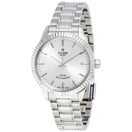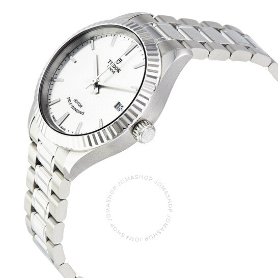 علبة من الفولاذ المقاوم للصدأ مع سوار من الفولاذ المقاوم للصدأ. إطار ثابت مُخدّد من الفولاذ المقاوم للصدأ. ميناء فضي اللون بعقارب فضية اللون وعلامات ساعات. علامات دقائق حول الحافة الخارجية. نوع الميناء: تناظري. عرض التاريخ عند موضع الساعة 3. حركة أوتوماتيكية من عيار تيودور 2824 مع احتياطي طاقة لمدة 38 ساعة. زجاج من الياقوت المقاوم للخدش. تاج لولبي. غطاء خلفي صلب. حجم العلبة: 34 مم. شكل دائري. مشبك قابل للطي. مقاومة للماء حتى عمق 100 متر / 330 قدمًا. الوظائف: التاريخ، الساعة، الدقائق، الثواني. تصميم ساعة فاخر. علامة الساعة: صناعة سويسرية. ساعة نسائية أوتوماتيكية من طراز تيودور بمينا فضي M12310-0001.