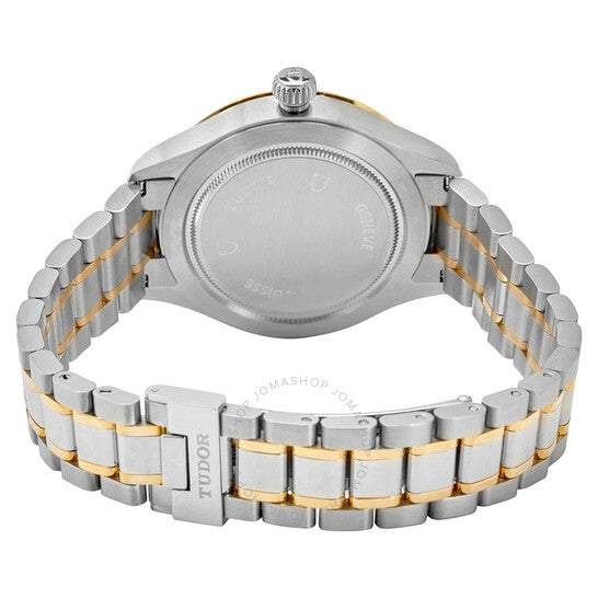 علبة من الفولاذ المقاوم للصدأ فضية اللون، مع سوار من الفولاذ المقاوم للصدأ بلونين (فضي وذهبي) وذهب أصفر. إطار ثابت مُخدّد من الذهب الأصفر عيار 18 قيراطًا. ميناء فضي اللون مع عقارب ذهبية اللون وأرقام فهرسة مرصعة بالألماس وعلامات ساعات. علامات دقائق حول الحافة الخارجية. نوع الميناء: تناظري. عرض التاريخ عند موضع الساعة 3. حركة أوتوماتيكية من طراز تيودور كاليبر 2824 مع احتياطي طاقة لمدة 38 ساعة. زجاج من الياقوت المقاوم للخدش. تاج لولبي. غطاء خلفي صلب. شكل دائري. حجم العلبة: 38 مم. مشبك قابل للطي. مقاومة للماء حتى عمق 100 متر / 330 قدمًا. الوظائف: التاريخ، الساعة، الدقيقة، الثانية. تصميم ساعة فاخرة. علامة الساعة: صناعة سويسرية. ساعة رجالية أوتوماتيكية من طراز تيودور، بمينا فضي مرصع بالألماس، طراز M12513-0009.
