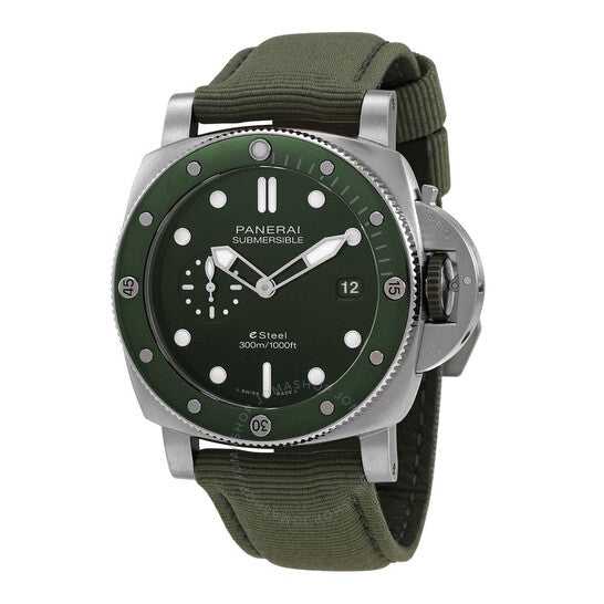 علبة من الفولاذ المقاوم للصدأ مصقولة باللون الفضي مع سوار قماشي أخضر. ميناء أخضر مصقول متدرج الألوان مع عقارب ومؤشرات ساعات فضية اللون. نوع الميناء: تناظري. عقارب ومؤشرات مضيئة. عرض التاريخ عند موضع الساعة 3. ميناء فرعي واحد يعرض: ثواني صغيرة. حركة بانراي كاليبر P.900 أوتوماتيكية، مستوحاة من بانراي OP XXXIV، تحتوي على 25 جوهرة، تنبض بمعدل 28800 ذبذبة في الساعة، ولديها احتياطي طاقة يدوم حوالي 72 ساعة. زجاج من الياقوت المقاوم للخدش. تاج لولبي. غطاء خلفي صلب. شكل العلبة وسادة، مقاس العلبة: 44 مم. عرض السوار: 24/22 مم. مقاومة للماء حتى عمق 300 متر / 1000 قدم. الوظائف: التاريخ، الساعة، الدقيقة، الثانية. ساعة غواصة من سلسلة كوارنتاكواترو إستيل. تصميم ساعة فاخر. علامة الساعة: صناعة سويسرية. ساعة بانراي سابميرسيبل كوارنتاكواترو اي ستيل اوتوماتيكية للرجال PAM01287.