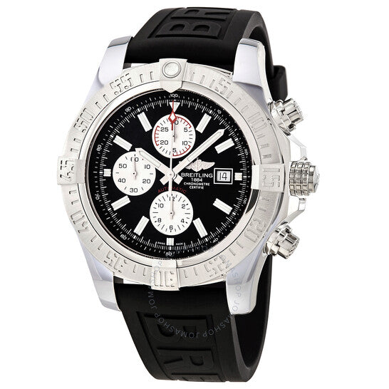 علبة من الفولاذ المقاوم للصدأ مع سوار مطاطي أسود. إطار دوار أحادي الاتجاه من الفولاذ المقاوم للصدأ. ميناء أسود بعقارب وعلامات ساعات فضية مضيئة. علامات دقائق. علامات 1/100 ثانية حول الحافة الخارجية. نوع الميناء: تناظري. عقارب وعلامات مضيئة. عرض التاريخ عند موضع الساعة 3. كرونوغراف - ثلاثة موانئ فرعية فضية تعرض: 60 ثانية، 30 دقيقة، و12 ساعة. حركة بريتلينغ أوتوماتيكية كاليبر 13، مبنية على ETA Valjoux 7750، تحتوي على 25 جوهرة، تنبض بمعدل 28800 ذبذبة في الساعة، ولديها احتياطي طاقة لمدة 42 ساعة تقريبًا. زجاج ياقوت مقاوم للخدش. تاج مُغلق ببرغي. غطاء خلفي صلب. شكل دائري. حجم الهيكل: 48 مم. سمك الهيكل: 17.75 مم. عرض السوار: 24 مم. مشبك تانغ. مقاومة للماء حتى عمق 300 متر / 1000 قدم. الوظائف: التاريخ، الساعات، الدقائق، الثواني. تصميم ساعة فاخر. علامة الساعة: صناعة سويسرية. ساعة بريتلينغ سوبر أفينجر II أوتوماتيكية كرونوغراف للرجال A13371111B1S2.