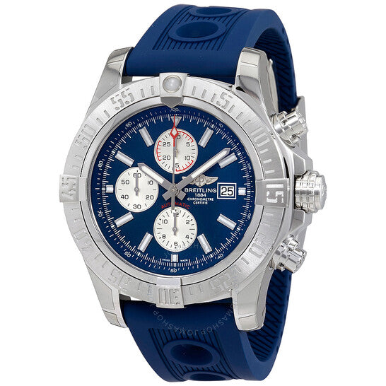 علبة من الفولاذ المقاوم للصدأ مع سوار مطاطي أزرق بتصميم متسابق المحيط. إطار دوار أحادي الاتجاه من الفولاذ المقاوم للصدأ. ميناء أزرق مع عقارب وعلامات ساعات فضية مضيئة. علامات دقائق. علامات 1/100 حول الحافة الخارجية. نوع الميناء: تناظري. عقارب وعلامات مضيئة. عرض التاريخ عند موضع الساعة 3. كرونوغراف - ثلاثة أقراص فرعية تعرض: 60 ثانية، 30 دقيقة، و12 ساعة. حركة بريتلينغ 13 أوتوماتيكية مع احتياطي طاقة لمدة 42 ساعة. زجاج ياقوت مقاوم للخدش. تاج مُغلق ببرغي. غطاء خلفي صلب. حجم العلبة: 48 مم. سمكها: 17.75 مم. شكلها دائري. عرض السوار: 24 مم / 20 مم. مشبك قابل للطي. مقاومة للماء حتى عمق 300 متر / 1000 قدم. الوظائف: كرونوغراف، تاريخ، ساعة، دقيقة، ثانية. تصميم ساعة فاخرة. ملصق الساعة: صناعة سويسرية. اختلافات المنتج: A1337111-C871-205S-A20D.2. ساعة بريتلينج سوبر أفينجر II كرونوغراف للرجال A1337111-C871-205S-A20D.2.