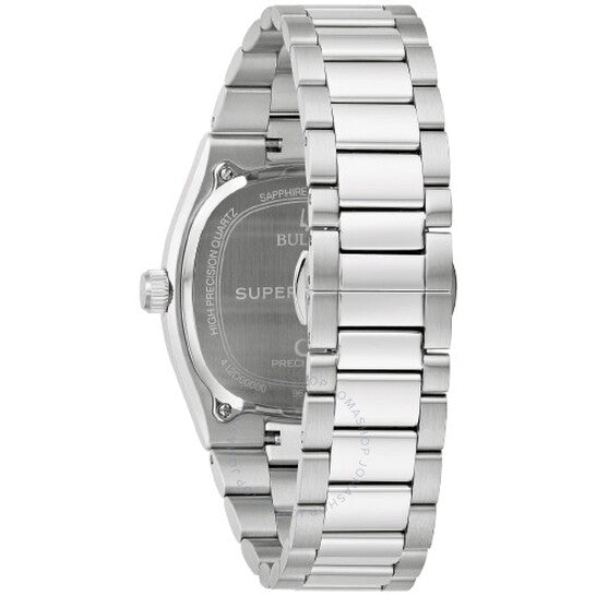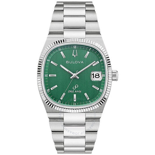 علبة وسوار من الفولاذ المقاوم للصدأ فضي اللون. إطار ثابت من الفولاذ المقاوم للصدأ فضي اللون. ميناء أخضر مع عقارب وعلامات ساعات فضية اللون. علامات دقائق حول الحافة الخارجية. نوع الميناء: تناظري. عقارب وعلامات مضيئة. عرض التاريخ عند موضع الساعة 3. حركة كوارتز بولوفا عيار NM10. زجاج ياقوت مقاوم للخدش. تاج قابل للسحب/الدفع. غطاء خلفي صلب. شكل العلبة مربع، مقاسها: 37.5 مم. عرض السوار: 26 مم. مشبك قابل للطي بزر ضغط. مقاومة للماء حتى عمق 30 مترًا / 100 قدم. الوظائف: التاريخ، الساعة، الدقائق، الثواني. سلسلة سوبر سيفيل. ساعة رسمية. ساعة بولوفا سوبر سيفيل كوارتز رجالية بمينا أخضر، 96B439.