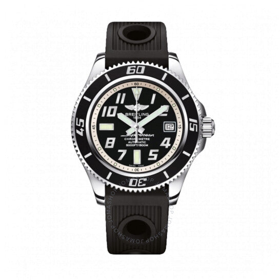 علبة من الفولاذ المقاوم للصدأ فضية اللون مع سوار مطاطي أسود. إطار أسود. ميناء أسود بإطار فضي مع عقارب فضية اللون وعلامات ساعات عربية. علامات دقائق حول الحافة الخارجية. نوع الميناء: تناظري. عقارب وعلامات مضيئة. عرض التاريخ عند موضع الساعة الثالثة. حركة بريتلينغ كاليبر 17 أوتوماتيكية، مبنية على ETA 2824-2، تحتوي على 25 جوهرة، تنبض بمعدل 28800 ذبذبة في الساعة، ولديها احتياطي طاقة لمدة 42 ساعة تقريبًا. زجاج ياقوت مقاوم للخدش. تاج لولبي. غطاء خلفي صلب. شكل دائري، حجم العلبة: 42 مم، سمكها: 15 مم. عرض السوار: 20 مم. مشبك قابل للطي. مقاومة للماء حتى عمق 1500 متر / 5000 قدم. الوظائف: التاريخ، الساعة، الدقيقة، الثانية، الكرونومتر. سلسلة سوبر أوشن 42. تصميم ساعة فاخرة. ملصق الساعة: صناعة سويسرية. ساعة بريتلينج سوبر أوشن 42 أوتوماتيكية كرونومتر للرجال A1736402/BA29.202S.A18D.2.