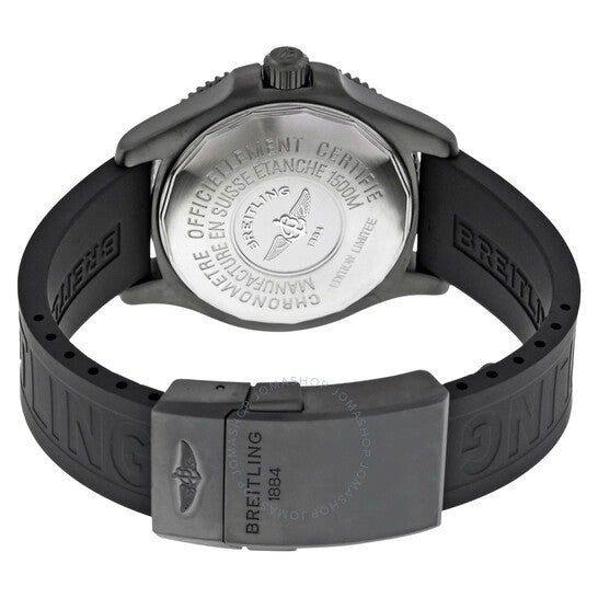 علبة من الفولاذ المقاوم للصدأ مع سوار مطاطي أسود (دايفر برو 3). إطار دوار أحادي الاتجاه. ميناء أسود بعقارب مضيئة وعلامات ساعات. علامات دقائق حول الحافة الخارجية. نوع الميناء: تناظري. عقارب وعلامات مضيئة. عرض التاريخ عند موضع الساعة 3. حركة أوتوماتيكية باحتياطي طاقة يصل إلى 40 ساعة. زجاج ياقوت مقاوم للخدش. تاج لولبي. غطاء خلفي صلب. حجم العلبة: 42 مم. سمكها: 13.3 مم. شكلها دائري. عرض السوار: 20 مم / 18 مم. مشبك قابل للطي. مقاومة للماء حتى عمق 1500 متر / 5000 قدم. الوظائف: التاريخ، الساعة، الدقائق، الثواني. تصميم ساعة فاخرة. علامة الساعة: صناعة سويسرية. ساعة بريتلينغ سوبر أوشن 42 أوتوماتيكية للرجال M17364B7-BD31BKPD3.